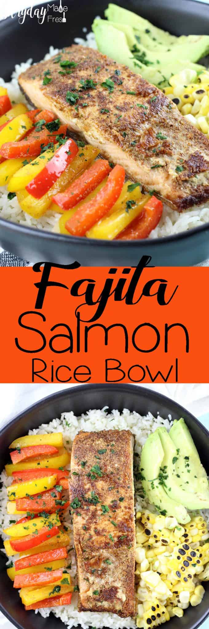 Enjoy salmon in a whole new way with this tasty Fajita Salmon Rice Bowl. A quick healthy option for lunch and dinner.
