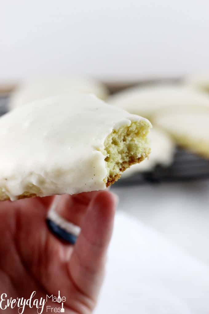 The texture is somewhere between a muffin and a biscuit. The flavor is loaded with vanilla!